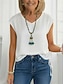 Mulheres Blusa Com Cordão Tecido Vintage à moda Sem Manga Decote V Tops regulares Diário Ao ar livre Streetwear Azul Preto Branco Amarelo Verão Primavera