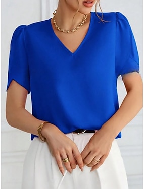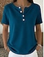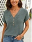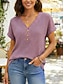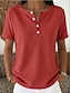 Mulheres Tops de verão Botões à moda Clássico Manga Curta Decote V Tops regulares Casual Diário Para Noite Preto Branco Rosa Vinho Azul Marinha Verão Primavera