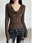 Mulheres Camiseta Elegante Vintage Manga Longa Gola Boba Tops regulares Diário Azul Vinho Marron Branco gasto Primavera Outono