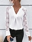 Mulheres Blusa Tops de renda Patchwork Côr Sólida Vintage à moda Casual Manga Longa Decote V Tops regulares Diário Feriado Branco Primavera Outono