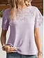 Mulheres Tops de renda Renda Patchwork Côr Sólida à moda Casual Manga Curta Gola Redonda Tops regulares Diário Preto Branco Roxo Verão Primavera