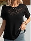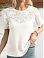 Mulheres Tops de renda Jugo de renda à moda Casual Manga Curta Gola Redonda Tops regulares Diário Preto Branco Roxo Verão Primavera