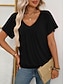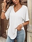Mulheres Camiseta Ilhó Tecido Moda Moderno Casual Manga Curta Decote V Tops regulares Diário Final de semana Preto Branco Amarelo Vermelho Verde Verão Primavera