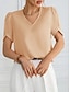 Mulheres Camiseta Topo de ilhó camiseta de tricô Ilhó à moda Casual Manga Curta Manga Morcego Decote V Tops regulares Diário Para Noite Azul Preto Branco Roxo Claro Marron Verão Primavera