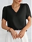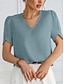 Mulheres Top de cetim Camiseta T-shirt Tecido Elegante Moda à moda Manga Curta Decote V Tops regulares Diário Para Noite Final de semana Azul Preto Branco Verde Claro Laranja Verão Primavera