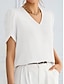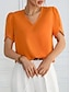 Mulheres Camisa Waffle Camiseta Camisetas Tops de tricô waffle Tecido à moda Clássico Moderno Manga Curta Decote V Tops regulares Diário Feriado Para Noite Branco Laranja Verde Azul Claro Preto Verão