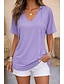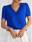 Mulheres Camiseta T-shirt Côr Sólida Moda à moda Clássico Manga Curta Decote V Tops regulares Diário Para Noite Final de semana Azul Roxo Verde Cáqui Verão Primavera