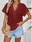 Mulheres Blusa Botões Côr Sólida à moda Casual Manga Curta Decote V Tops regulares Diário Branco Vinho Verão Primavera