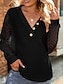Mulheres Blusa Renda Patchwork Botões Côr Sólida Elegante Moda Sensual Manga Longa Decote V Tops regulares Diário Para Noite Final de semana Preto Cinza Claro Outono