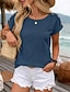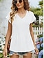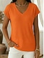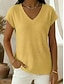 Mulheres Camiseta T-shirt Ilhó Tecido Moda à moda Clássico Manga Curta Decote V Tops regulares Diário Para Noite Final de semana Azul Preto Branco Amarelo Rosa Verão Primavera