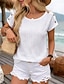 Mulheres Camiseta Waffle T-shirt Côr Sólida Elegante Moda Casual Manga Curta Decote V Tops regulares Diário Para Noite Roupas de férias Branco Verão Primavera