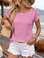 Mulheres Blusa Textura Topo de ilhó Camiseta Pointelle Blusa Com Cordão Vazado Tecido Ativo Vintage à moda Sem Manga Manga Curta Gola Redonda Tops regulares Casual Diário Streetwear Branco Rosa Rosa