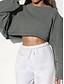 Mulheres Blusa Patchwork Tecido Ativo à moda Manga Longa Gola Redonda Tops curtos Streetwear Feriado Para Noite Branco Verde Claro Verde Cinzento Escuro Bege Verão Primavera