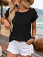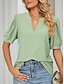 Mulheres Blusa Frufru Côr Sólida à moda Casual Manga Curta Decote V Tops regulares Diário Azul Preto Branco Rosa Fúcsia Verão Primavera