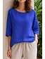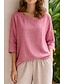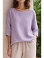 Mulheres Extra Grande Camiseta Linho de algodão sintético T-shirt Vintage Moda à moda Manga Curta Decote Canoa Tops regulares Casual Diário Roupas de férias Azul Rosa empoeirada Roxo Azul Claro Verão