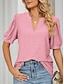 Mulheres Blusa Textura Topo de ilhó Camiseta Pointelle Blusa Franzido Tecido Ativo Casual Manga Curta Decote V Tops regulares Casual Diário Ao ar livre Rosa avermelhado Preto Branco Rosa Azul Real
