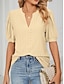 Mulheres Blusa Textura Topo de ilhó Camiseta Pointelle Blusa Patchwork Botões Tecido Vintage à moda Manga Curta Decote V Tops regulares Casual Diário Praia Rosa avermelhado Branco Amarelo Verde Claro
