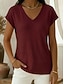 Mulheres Camiseta Waffle T-shirt Ilhó Côr Sólida Elegante Moda Casual Manga Curta Decote V Colarinho de Camisa Tops regulares Diário Para Noite Roupas de férias Preto Branco Cáqui Verão Primavera