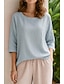 Mulheres Túnica Côr Sólida Elegante Vintage à moda Manga Curta Gola Redonda Tops regulares Diário Azul Amarelo Laranja Verão