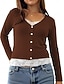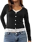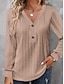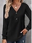 Camiseta Feminina Cor Sólida Elegante Moderna Casual Manga Longa Gola em V Tops Regulares Diários Feriado Botões Preto Branco Amarelo Vinho Marrom Primavera Outono Inverno