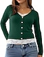 Mulheres Blusa Botões Côr Sólida Tropical à moda Casual Manga Longa Gola Redonda Tops regulares Diário Rosa Azul Céu Verde Cinzento Verão Primavera Outono