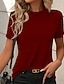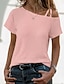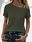 Mulheres Camiseta Côr Sólida Vintage à moda Manga Curta Pescoço Assimétrico Tops regulares Diário Para Noite Final de semana Preto Branco Rosa Verde Tropa Cáqui Verão Primavera