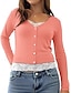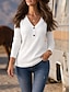 Mulheres Camiseta T-shirt Botões Tecido Elegante Moda Clássico Manga Longa Decote V Tops regulares Diário Para Noite Final de semana Preto Branco Rosa Azul Marinha Cinzento Primavera Outono