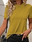 Mulheres Camiseta T-shirt Botões Tecido Moda à moda Clássico Manga Curta Gola Redonda Tops regulares Diário Para Noite Final de semana Azul Branco Amarelo Rosa Verde Verão Primavera