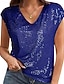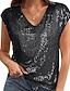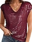 Mulheres Camiseta T-shirt Paetês Côr Sólida Elegante Moda à moda Manga Curta Decote V Tops regulares Diário Para Noite Final de semana Azul Preto Rosa Vinho Cáqui Verão Primavera