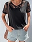 Mulheres Camiseta T-shirt Renda Patchwork Tecido Elegante Moda à moda Manga Curta Decote V Tops regulares Diário Para Noite Final de semana Preto Bege Verão Primavera