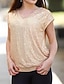 Mulheres Camiseta T-shirt Paetês Côr Sólida Gráfico Tecido Moda Clássico Casual Sem Manga Manga Curta Gola Redonda Tops regulares Diário Para Noite Final de semana Dourado Preto Branco Vinho Vermelho