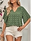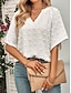 Mulheres Blusa Textura Topo de ilhó Camiseta Pointelle Camiseta Ilhó Côr Sólida Moda Clássico Casual Manga Curta Decote V Tops regulares Casual Diário Praia Preto Branco Rosa Azul Marinha Verde Escuro