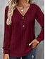 Mulheres Camiseta Ilhó Tecido Casual Manga Longa Decote V Tops regulares Diário Para Noite Final de semana Azul Verde Claro Verde Escuro Roxo Laranja Verão Primavera