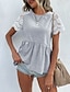 Mulheres Top de emenda de renda Blusa babydoll Renda Ilhó Gráfico Tecido à moda Casual Manga Curta Gola Redonda Decote Redondo Tops regulares Diário Para Noite Cinza Claro Verão Primavera