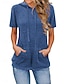 Mulheres Blusa Bolsos Côr Sólida Vintage à moda Casual Manga Curta Com Capuz Tops regulares Diário Azul Preto Rosa Vermelho Verde Escuro Verão Primavera