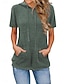 Mulheres Blusa Botões Côr Sólida Diário à moda Casual Manga Curta Decote V Tops regulares Diário Preto Branco Rosa Azul Céu Damasco Verão Primavera