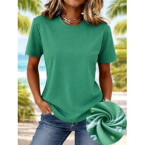 Mulheres Camiseta T-shirt Tecido Moda à moda Clássico Manga Curta Gola Redonda Tops regulares Diário Para Noite Final de semana Azul Preto Vinho Roxo Verde Verão Primavera