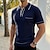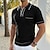 Homens Camisas Polo Waffle Textura Casual Rua Aberto para a Lateral Manga Longa Moda Lazer Bloco de cor Zip Up Patchwork Outono Primavera & Outono Todas as Estações Normal Preto Azul Roxo cáqui Verde