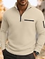 Homens Camisas Polo Waffle Textura Desportos e Ar livre Casual Quarter Zip Manga Longa Moda Confortável Zip Up Bolsos Primavera & Outono Estações Cruzadas Outono & inverno Preto Branco Azul Marinha
