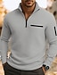 Homens Camisas Polo Waffle Textura Casual Quarter Zip Manga Longa Moda Confortável Bloco de cor Zip Up Bolsos Outono Primavera & Outono Normal Branco Preto Azul Azul Claro Cinzento Escuro Roxo