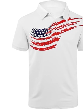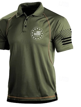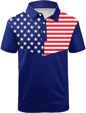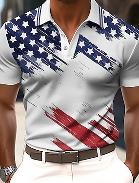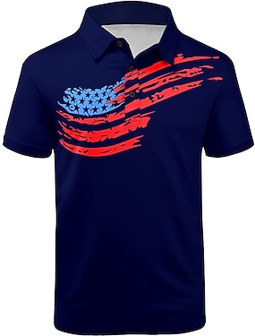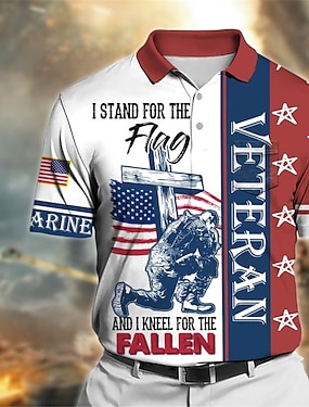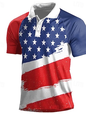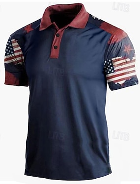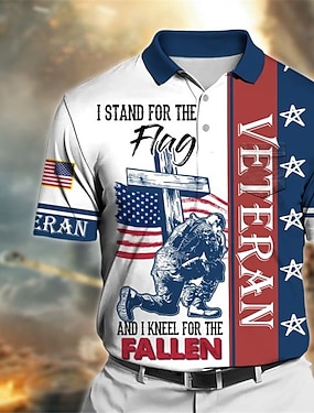 Homens veteranos Patriótico Bandeiras Camisas Polo Camisa de golfe Manga Curta Camisa Aberto para a Lateral Casual Diário Impressão 3D Azul Vermelho Verde Cinzento Escuro Imprimir Botão para baixo