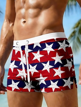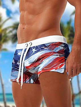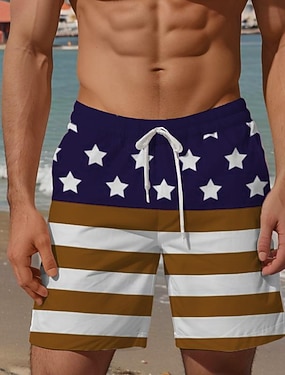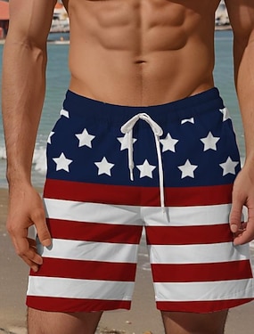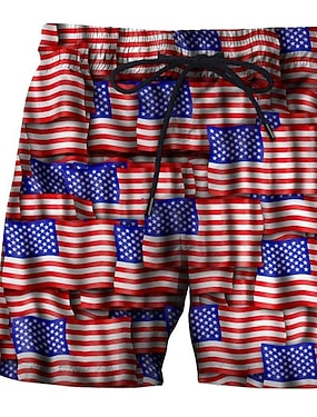 Homens 4 de julho - 250º aniversário dos EUA Bandeira americana Calção Justo de Natação Shorts de Natação Bermuda de Surf Cintura Média Havaiana Casual Praia Feriado Com Cordão com forro de malha