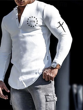 Homens American US Flag 4 de julho - 250º aniversário dos EUA camisa ocidental camisa de botão Manga Longa Ocidental Casual Casual Primavera Outono Aberto para a Lateral Abotoar 2 bolsos Branco 1