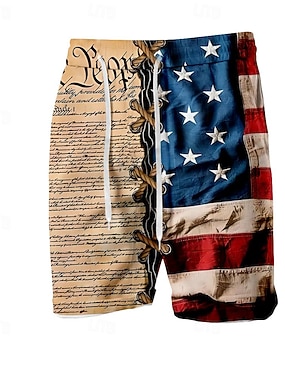Homens Bandeira Letra 4 de julho - 250º aniversário dos EUA Bermuda de Surf Calção de Banho Calção Cintura Média Moda Roupa de rua Designer Casual Diário Streetwear Com Cordão Bolsos Cintura elástica