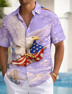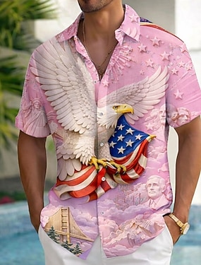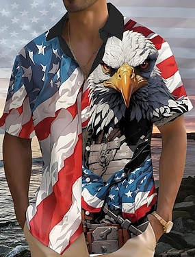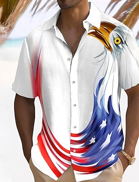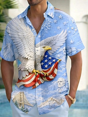 Dia da Independência Americana Homens 4 de julho - 250º aniversário dos EUA Águia Bandeira americana Camisa Social camisa de botão Manga Curta Moda Roupa de rua Designer Diário Dia da Independência
