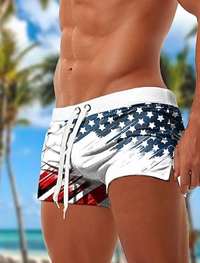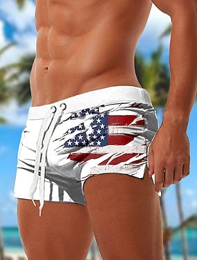 Homens Bandeira 4 de julho - 250º aniversário dos EUA Bandeira americana Calção Justo de Natação Shorts de Natação Bermuda de Surf Cintura Média Moda Designer Praia Surf Feriado Com Cordão Bolsos