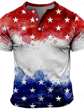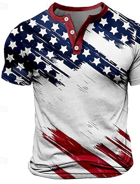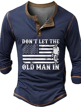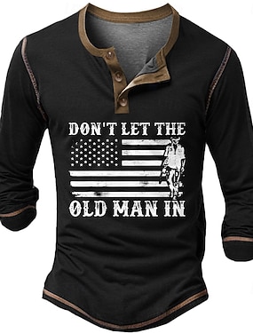 Camiseta Gráfica Masculina de Manga Curta Henley - Não Deixe o Velho Entrar Design Patriótico da Bandeira Americana