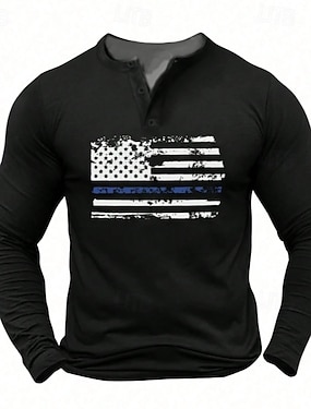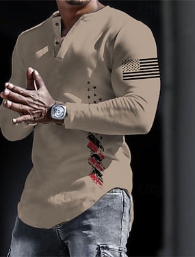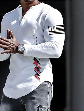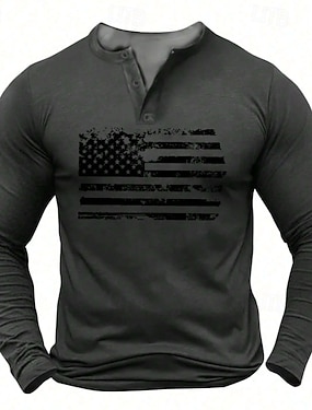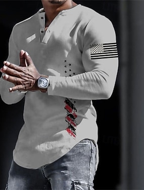 4 de julho de 2026 250º Dia da Memória Camiseta longa Henley gráfica vintage bandeira americana masculina casual moda de rua diária