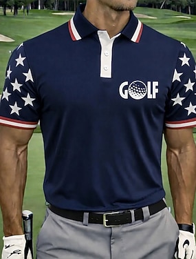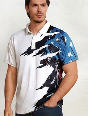 Homens Estrela veteranos Patriótico Camisas Polo Camisa de golfe Manga Curta Camisa Aberto para a Lateral Diário Praia Impressão 3D Branco Vinho Azul Real Verde Escuro Preto 3D Botão para baixo Roupa