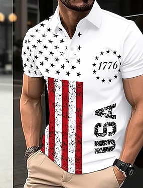 4 de julho de 2026 250º Homens veteranos Patriótico Camisas Polo Manga Curta Camisas polo Aberto para a Lateral Casual Diário Praia Rua Feriado 3D Primavera Verão Branco Vermelho Azul Marinha